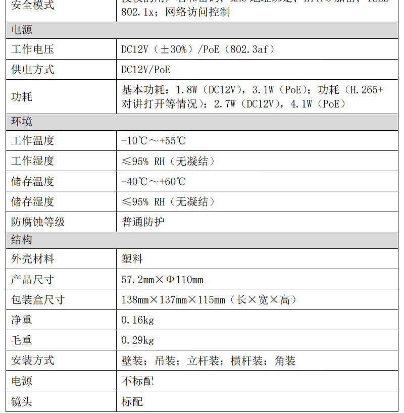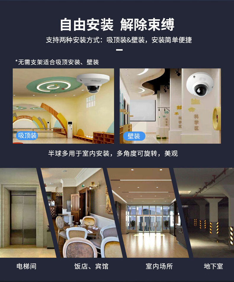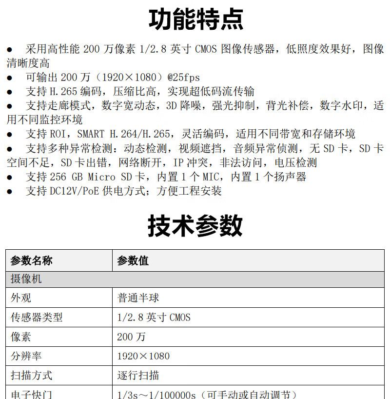 dahua大华200万高清电梯防暴摄像头2.8mm定焦语音对讲POE网线供电红外带夜视监控IPC-HDP2230C-ST