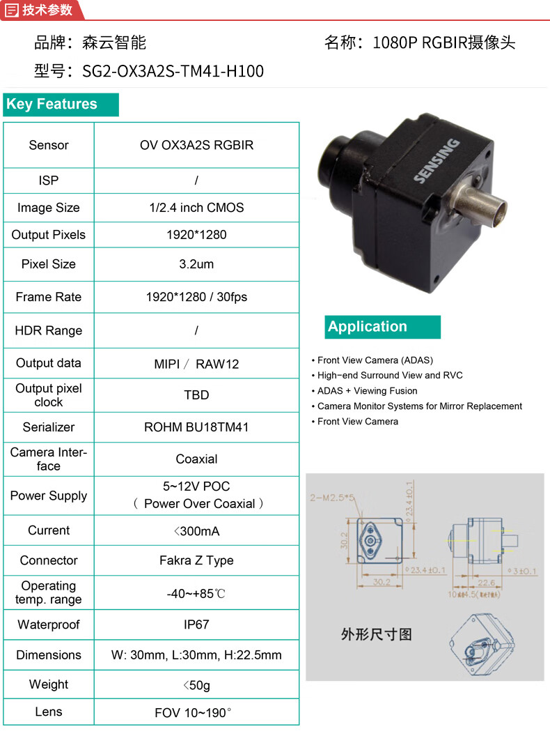 H 森云智能 摄像头 SG2-OX3A2S-TM41-H100 维保1年 货期37天 起订量5