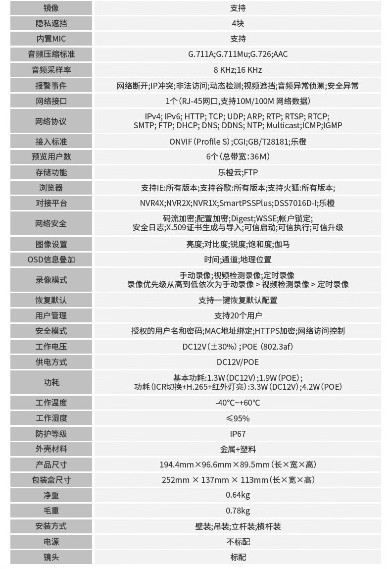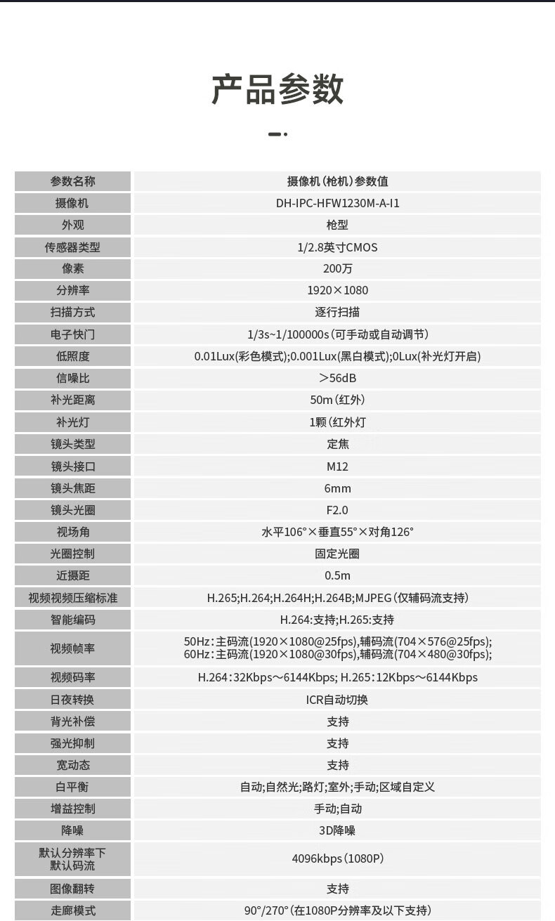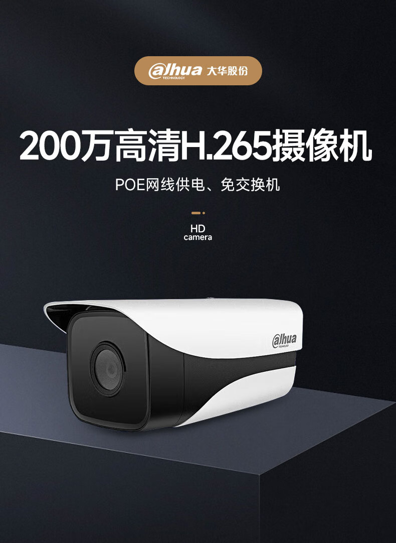 dahua大华摄像头200万网络高清摄像机POE供电室外防水可录音带夜视枪机监控IPC-HFW1230M-A-I1 6MM