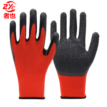 者也 12双浸胶皱纹防滑手套 乳胶挂胶半挂皱纹耐磨防油胶皮手套工业维修工地建筑劳保手套 皱纹掌红黑