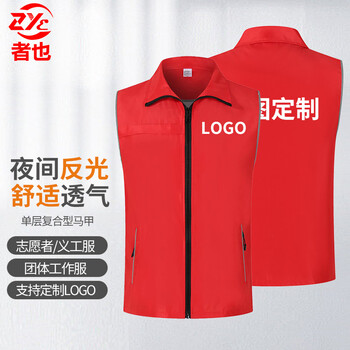 者也 志愿者马甲定制印logo公益活动工作服广告宣传服 单层复合型反光马甲(红色) XL码