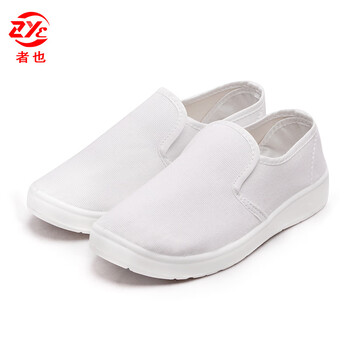 者也 防静电鞋实验室无尘鞋白色加厚PU软底透气车间工作鞋蓝色男女轻便工厂防尘中巾帆布鞋 白色39码
