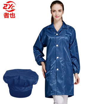 者也 防静电条纹大褂配大工帽实验室食品工厂车间电子厂无尘洁净防护工作衣 藏青 XL码