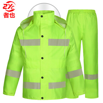 者也 成人户外加厚反光雨衣交通劳保雨衣雨裤套装 加宽款荧光绿反光雨衣 L