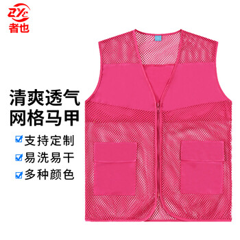 者也 夏季男女士网格双口袋马甲志愿者义工工作服可定制印logo 双口袋网布马甲【玫红色】 M码