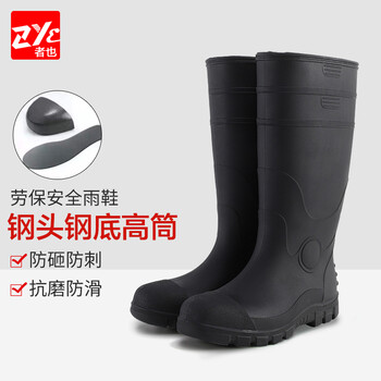 者也(ZYE) 中高筒钢头防砸劳保胶鞋工地安全防滑防刺 钢头钢底高筒(防砸防刺) 42码