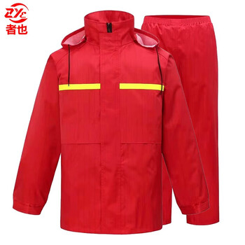 者也 防静电雨衣雨裤套装反光油田执勤电力加油站煤矿化工厂用双层分体雨衣可定制 红色 XXL码