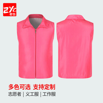 者也(ZYE)个性定制拉链马甲志愿者工作服成人男女款宣传背心LOGO可印字 单层复合型玫红色马甲 2XL码