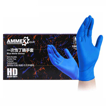 AMMEX爱马斯APFNCHD44100一次性深蓝色丁腈手套中号(耐用型 无粉 麻面)100只/盒*1盒 蓝色 中