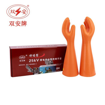 双安 25KV橡胶绝缘手套(手型)带电作业电力配电房安全防触电