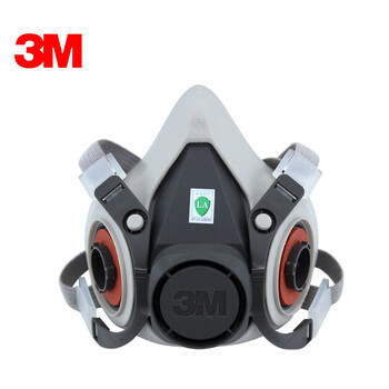 3M 6100 半面型防护面罩(小号)橡胶双滤盒防毒半面罩 1个 灰色 均码