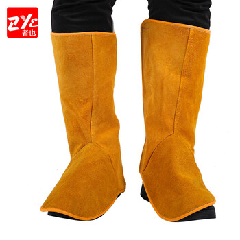 者也(ZYE)电焊防护牛皮脚套耐高温防火花飞溅阻燃隔热 橘色粘扣长款