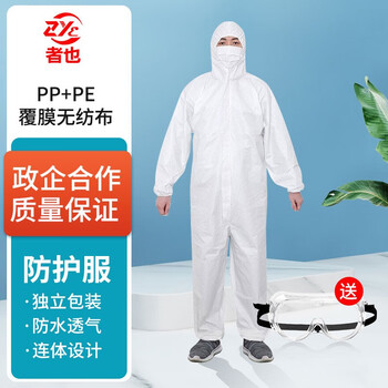 者也 一次性连体连帽防护服防水全身隔离防护衣可重复使用 PP+PE双层覆膜 2XL码送护目镜