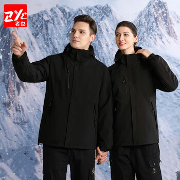 者也(ZYE)冬季冲锋衣可拆卸加绒加厚两件套防风登山外套定制logo 黄拉链款 黑色4XL码