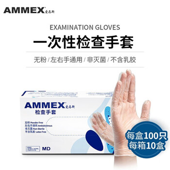 爱马斯AMMEX GPX3MP 44100一次性透明PVC手套加工餐饮清洁手套 定做 100只/盒 M码