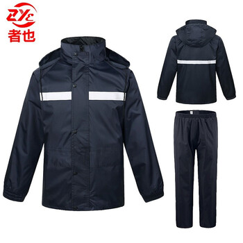 者也 大客户定制用链接交通执勤反光警示分体雨衣套装 藏青警示雨衣 2XL码