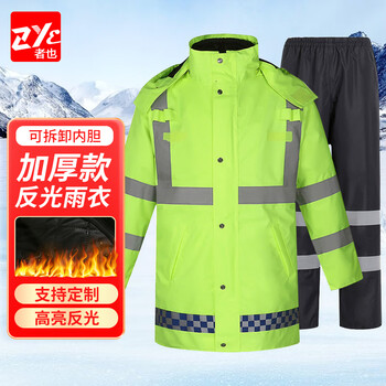 者也(ZYE)反光执勤雨衣路政交通防水加棉雨衣套装 荧光绿套装 3XL码