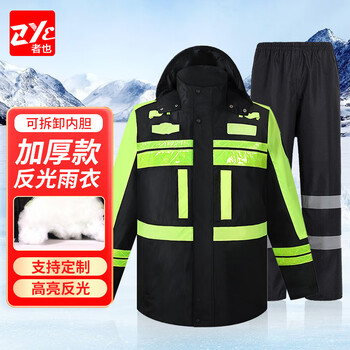者也(ZYE)新式冬季反光加厚雨衣 防寒加绒拼接高速路政骑行户外加棉雨衣 套装XL码