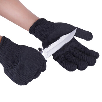 安美尚(ams)5A级三根钢丝手套 加厚钢丝防割手套 黑色 定做 1双