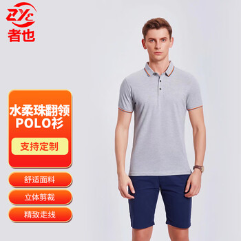 者也 夏季工装广告文化POLO衫弹力棉翻领短袖可定制logo印字 6880款花灰 2XL码