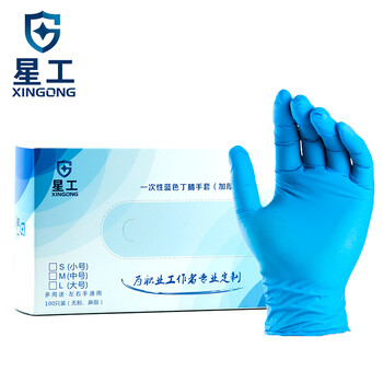 星工 (XINGGONG) 一次性手套丁腈耐油耐用加厚食品级厨房家务洗碗无粉防护丁晴手套100只/盒M