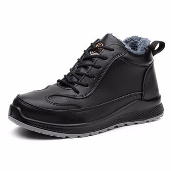 老管家劳保鞋男冬高帮加绒保暖防寒安全工作钢包头防砸防刺穿耐磨实心底842黑色37