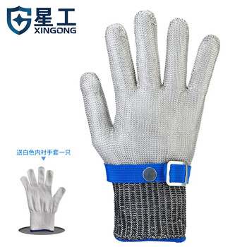 星工(XINGGONG)防割手套 不锈钢丝5级防刀刃切割防咬耐磨劳保手套短款 蓝色1只