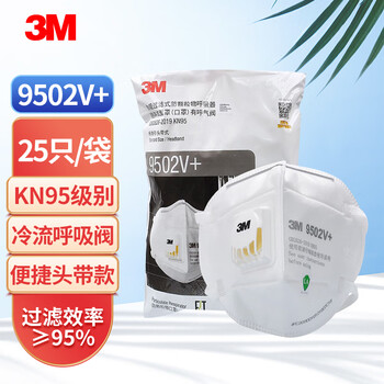 3M 9502V+口罩环保装 头戴折叠式带呼吸阀KN95防雾霾PM2.5防粉尘工业打磨 25只一袋装