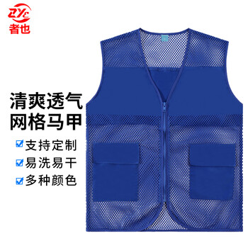 者也 夏季男女士网格双口袋马甲志愿者义工工作服可定制印logo 双口袋网布马甲【蓝色】 4XL码