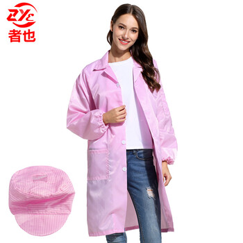 者也 防静电服工厂车间洁净衣条纹大褂配小工帽 粉色 XL码
