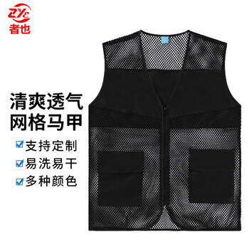 者也 夏季男女士网格双口袋马甲志愿者义工工作服可定制印logo 双口袋网布马甲【黑色】 3XL码