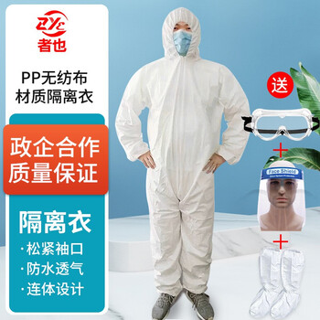 者也 一次性无纺布PP隔离衣防飞沫全身连体带帽防护服农药喷洒畜牧养殖工作服 隔离服+防护镜+面屏+鞋套 XL码