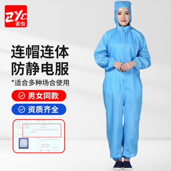 者也(ZYE)防静电服无尘连帽连体带帽子防尘服男女防护实验室电子厂GMP无尘工作服 连帽蓝色 L码