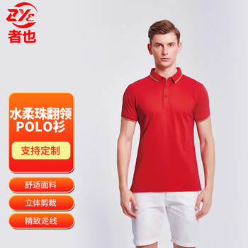 者也 夏季工装广告文化POLO衫弹力棉翻领短袖可定制logo印字 6880款大红 L码