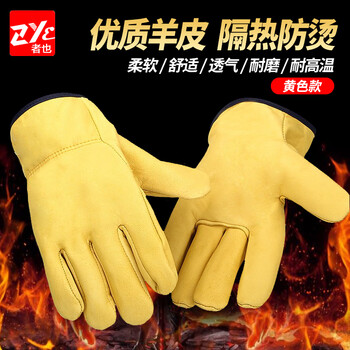 者也(ZYE)羊皮电焊工手套 隔热防烫焊接手套工地搬运手套 黄色