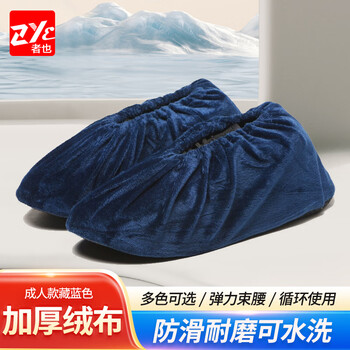 者也(ZYE)加厚绒布鞋套可反复洗防尘鞋罩耐磨防滑底室内地板脚套学生机房鞋套样品房鞋套 藏蓝色