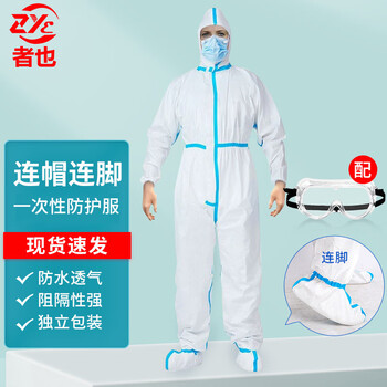 者也 一次性防护服全身防尘隔离防护衣无纺布连体带帽防护服 隔离服XL号【送护目镜】