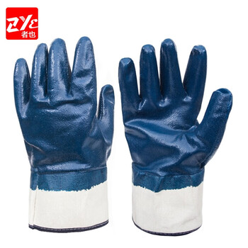 者也(ZYE) 劳保手套浸胶耐磨耐油防水丁腈蓝大口加厚帆布挂胶加油站装卸维修工人防护 12双