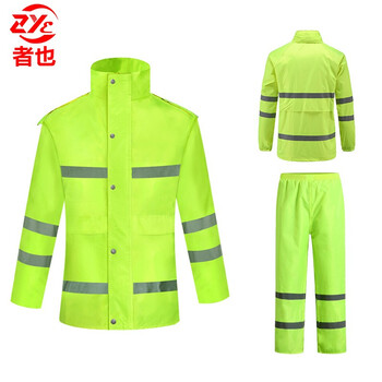 者也 户外反光雨衣交通执勤警示安全服加厚应急救援雨衣 荧光绿(单雨衣) M