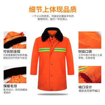 者也(ZYE)保安加厚加长反光棉衣劳保棉袄防寒服工作服棉衣反光棉服 160-190码备注尺码 环卫棉服