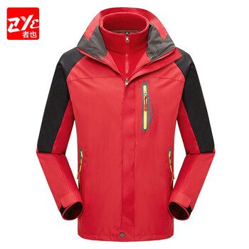 者也(ZYE)冬季冲锋衣可拆卸加绒加厚两件套防风登山外套定制logo 黄拉链款 大红L码