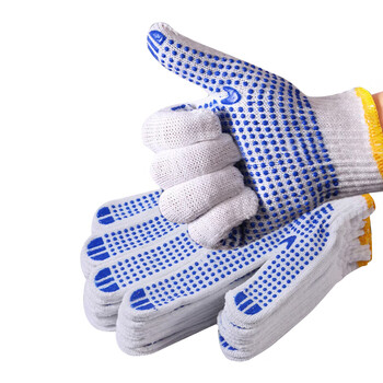 安美尚(ams)10针尼龙600G点珠手套 蓝色点胶劳保手套 工地搬砖耐磨加厚 定做 12双