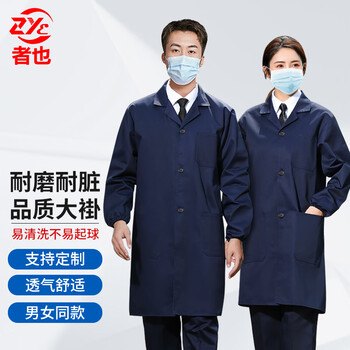 者也 工作服大褂工装劳保服搬运防尘服实验室大褂加厚涤棉蓝大褂 工厂罩衣 藏青
