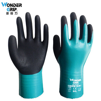 多给力(WonderGrip)WG-528长筒灵巧型防油防水耐磨丁腈全浸胶手套防滑舒适型 绿色 L 5双 定做