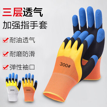 者也(ZYE)三层透气发泡劳保手套浸胶涂掌手套【蓝黄橙】 24双