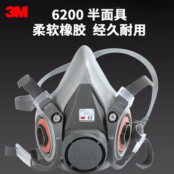 3M 6200防毒面具半面罩头戴式防护面具主体双滤盒 防护有机气体搭配6000系列滤毒盒