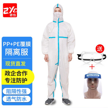 者也(ZYE)全身连体连帽防护服一次性双层覆膜封蓝胶压胶隔离防护衣 送护目镜+面屏 2XL码