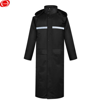 谋福CNMF黑色长款连体风衣式雨衣 保安执勤站岗建筑垂钓劳保骑行雨衣雨披 (HD长款雨衣)3XL(165-175) 8017