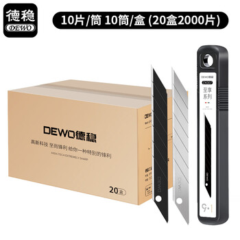 德稳(DEWO)ZS003至尚系列小号30度尖角全黑刃美工刀片9mm美工刀替换刃 汽车贴膜专用美工刀片10片/筒*200筒