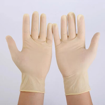 【M米黄中厚款乳胶100只】一次性乳胶手套餐饮耐磨防水丁晴手套